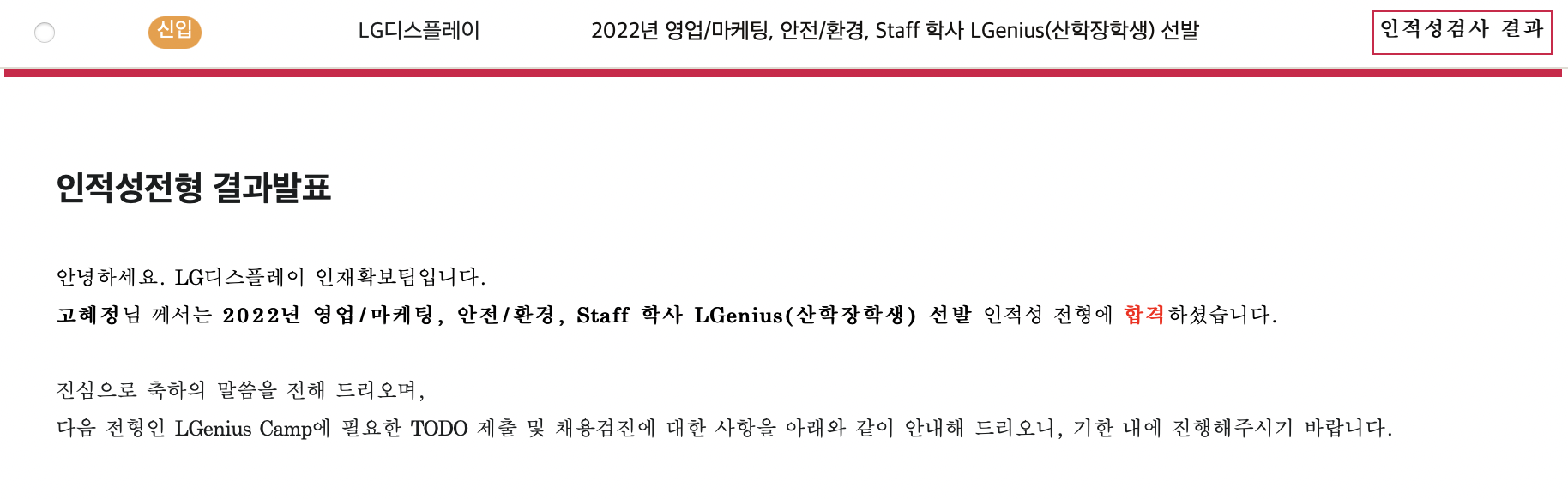 [LG 디스플레이] 2022 학사 LGenius 산학장학생 해외영업/마케팅 인적성 전형 합격 본문